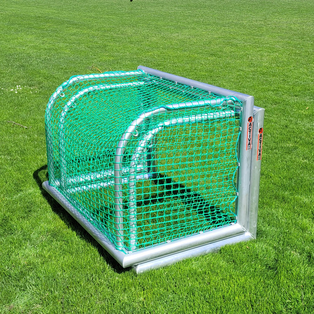 Das Angebot umfasst 6 Tore inklusive grüne Tornetze mit MW 100 mm, Netzhaken sowie einen vollverschweissten Transportwagen. Installation und Transportkosten exklusive.